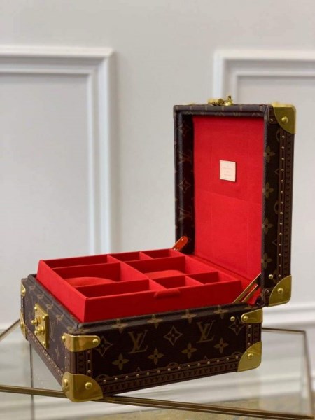 This 8 watch case is crafted in classic Monogram canvas. It easily goes from safe to suitcase and has a removable tray to hide other valuables.