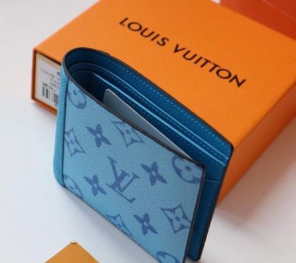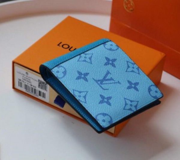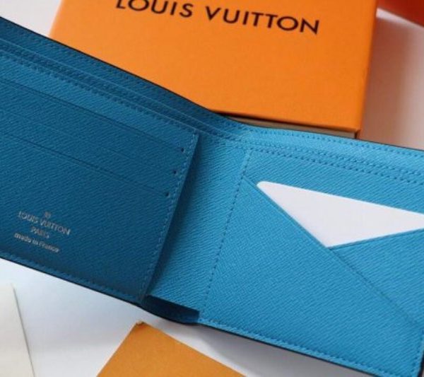 The simple lines of the Multiple Wallet are perfectly complemented by the sober navy blue calf leather with a light blue Monogram pattern printed and embossed into the leather. The classic wallet design features a perfectly crafted interior with three card slots and two diagonal side slots for receipts.