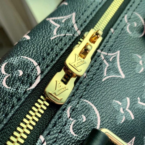 The compact Speedy Bandouli??re 25 handbag reinvents its elegant silhouette with an outside pocket and gold-color buckle. The miniature Monogram pattern on the canvas and the leather trim evoke the House’s historic design codes, as do the rolled-leather handles and engraved padlock. An adjustable and removable strap enables shoulder and cross-body carry.