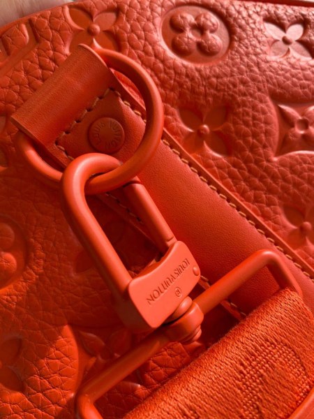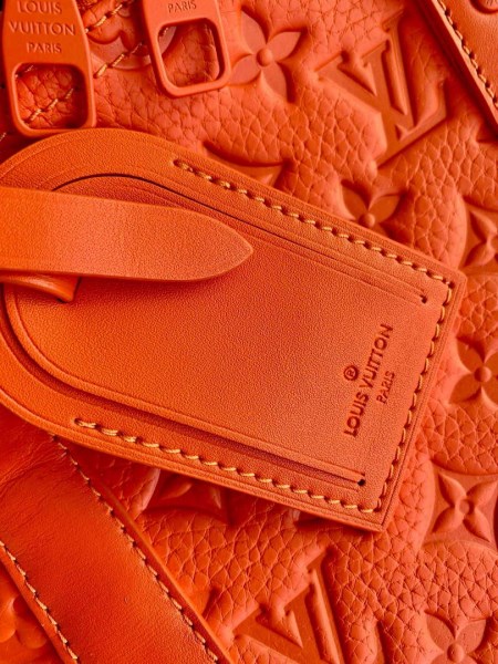 The famous Keepall now comes in a dazzling shade of orange, one of designer Virgil Abloh’s emblematic colors. Crafted in supple Taurillon leather embossed with Louis Vuitton’s historic Monogram pattern, it features all the classic Keepall details, like the double reinforcement strips and the buckled-on leather name tag. A fun new way to sport the Monogram look.