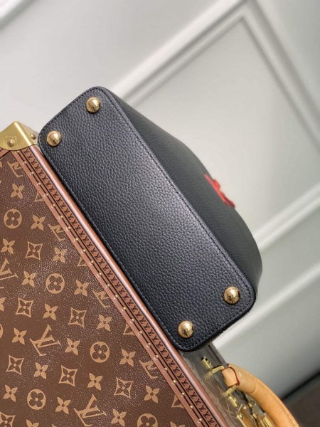 The Capucines BB handbag is made from two-tone full-grain Taurillon leather with the signature LV Initials in a delicate, feminine color. The BB Capucines size boasts all the iconic details – LV initials, distinctive side rings, and subtle Monogram Flower on the flap.