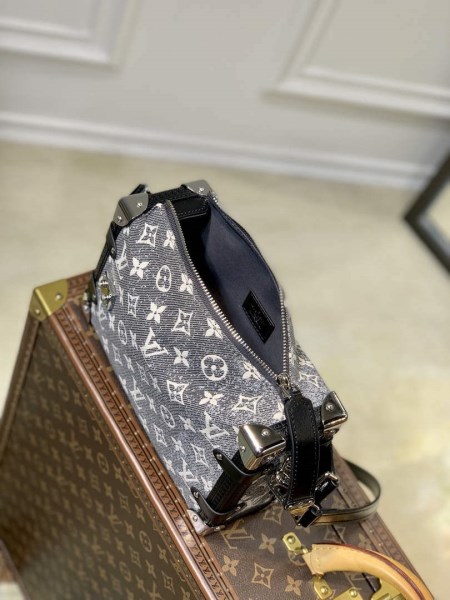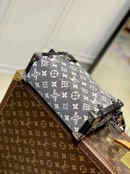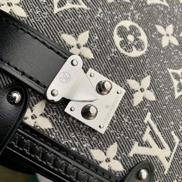 Die neue Side Trunk Handtasche pr sentiert sich in Monogram-Jacquard-Denim. Dieses erstmals auf der Cruise 2023 Fashion Show vorgestellte Gewebe zeigt das charakteristische Motiv des Hauses Louis Vuitton mit einem modischen Stonewashed-Effekt, dessen grobe Note die raffinierten, von historischen Koffern inspirierten Details unterstreicht: Bes tze aus gepr gtem Leder und polierte Beschl ge. F??r eine Vielzahl an Tragem glichkeiten sind der Griff an der Oberseite und der Schulterriemen abnehmbar.