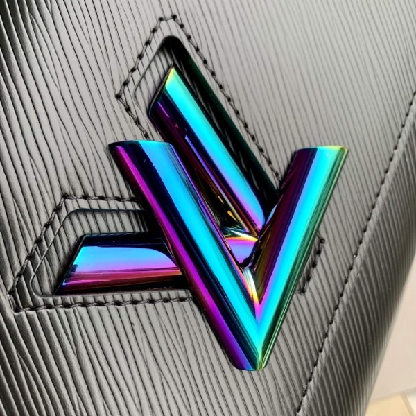 This Twist MM handbag in Epi grained leather is adorned with a unique triple chain that enables hand-carry, but also shoulder and cross-body wear when two of the thin chains are attached to the leather strap. The triple chain and LV Twist lock feature an iridescent finish that makes them shimmer like a scarab beetle.