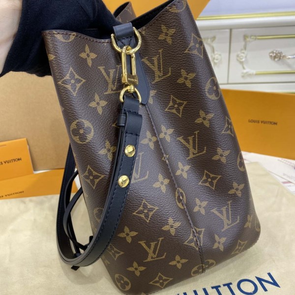 A true House icon, the N??oNo?? bucket bag revisits a 1932 design by Gaston-Louis Vuitton. The original was created to transport bottles of Champagne in style; this modern version in Monogram canvas features a sleek shape, colorful leather trim and a matching bonded lining. The adjustable smart strap can be slung over the shoulder or lengthened for a trendy cross-body carry.