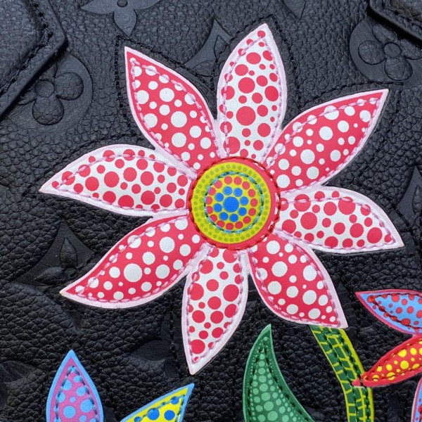 Flowers have been a key element in the artist’s life and work since her childhood in rural Japan, where her parents ran a plant nursery. Here they appear in leather marquetry on black Monogram Empreinte cowhide, giving this stylish bag a distinctively feminine crafted touch.