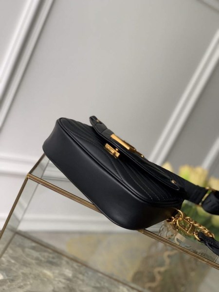 Louis Vuitton introduces the versatile New Wave Multi-Pochette crossbody bag in quilted cowhide leather. With its wide strap, featuring an embroidered ??Louis Vuitton?? signature, gold-color chain for hand or short shoulder carry, and round coin purse clipped on the strap’s snap hook, all removable, it is the very definition of a versatile fashion accessory.