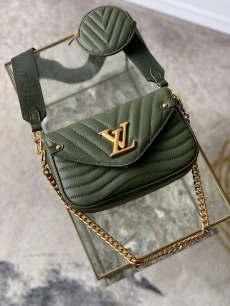 Louis Vuitton introduces the versatile New Wave Multi-Pochette crossbody bag in quilted cowhide leather. With its wide strap, featuring an embroidered ??Louis Vuitton?? signature, gold-color chain for hand or short shoulder carry, and round coin purse clipped on the strap’s snap hook, all removable, it is the very definition of a versatile fashion accessory.