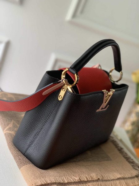 LV M57518 Louis Vuitton Capucines MM Handbag Black and Red