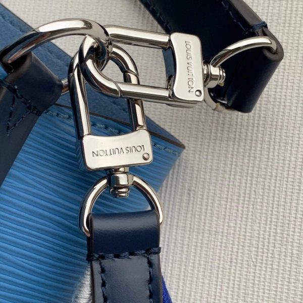 The adorable N??oNo?? BB bucket bag now features an embroidered Jacquard strap for stylish shoulder carry. The wide removable strap is reversible: Louis Vuitton logos on one side, Monogram Flowers on another. Made from grained Epi leather, this compact bag has two inside compartments and a central flat pocket that closes with a press stud.