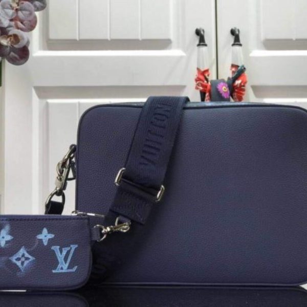 The light-blue-and-white Monogram motif printed irregularly on the grained leather of the Trio Messenger bag give a customized feel. This hybrid cross-body bag mixes functionality with fashion, thanks to a detachable zipped pocket on the front and a removable coin purse attached to the strap.