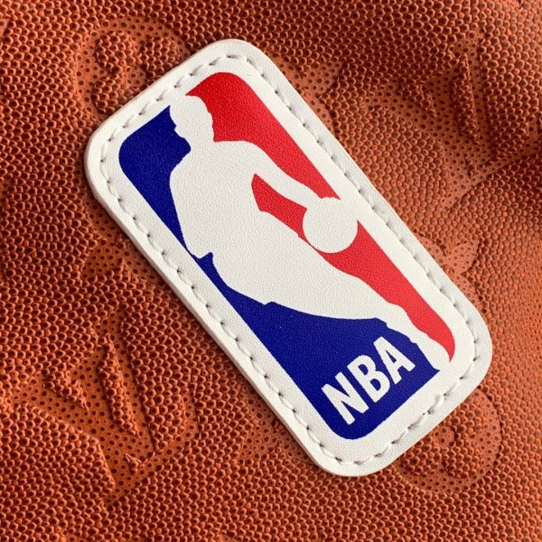Reimagined as part of the LV x NBA SEASON 2 collaboration, the Keepall Bandouli??re 55 travel bag is made from Ball Grain leather. The supple embossed leather is ornamented with basketball netting at the end of the bag, the official NBA logo in the lower corner, and a long gold-color chain attached a key bell.