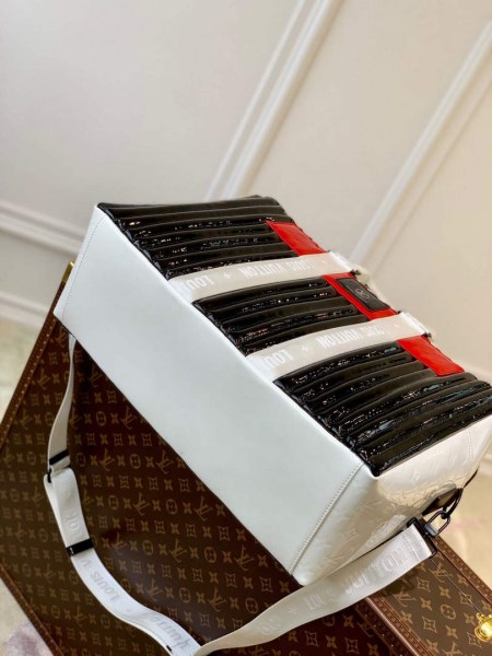 Part of the LV Mirror Mirror capsule launched for Fall-Winter 2021-22, the Neo Porte Documents Voyage is made from Monogram Mirror canvas, Virgil Abloh’s homage to the House’s history of reflective materials and specifically Marc Jacob’s Mirror Monogram from 2006. It’s trimmed in natural leather. Top handles and a detachable strap translate into carry options.