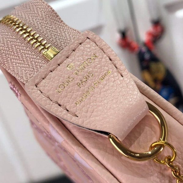 The Mini Pochette Accessoires is revisited for the seasonal Monogram Empreinte Broderies edition, which also includes accessories and leather goods. Monogram-embossed grained cowhide leather is embroidered with diamond-pattern stitching recalling the quilting inside historic Louis Vuitton trunks. This stylish mini pouch can be carried as a clutch or hooked onto a bag or belt.