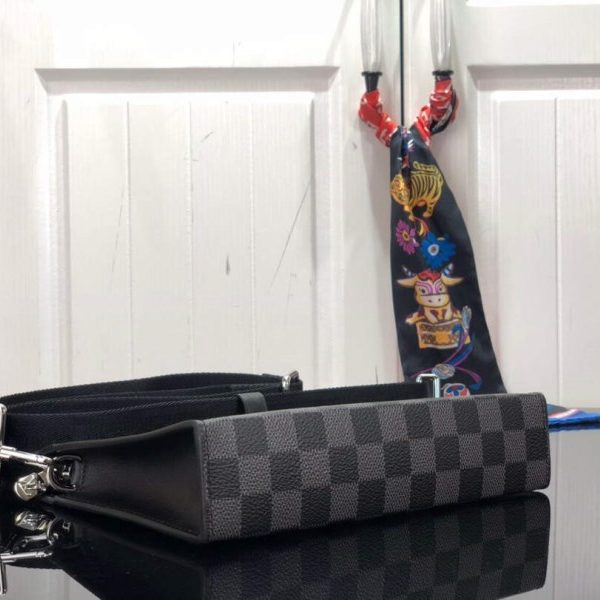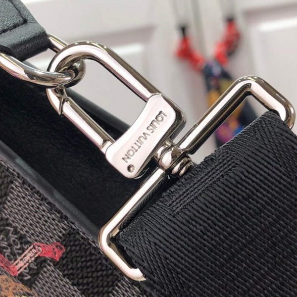 An elephant, a tiger, and an ostrich charge across the checkerboard pattern of the Damier Graphite canvas of this Gaston Wearable Wallet. The pastel pattern is made from customs-style stamps. Inspired by the Pochette Voyage, it features a removable card holder attached to the strap, ideal for contactless payment.
