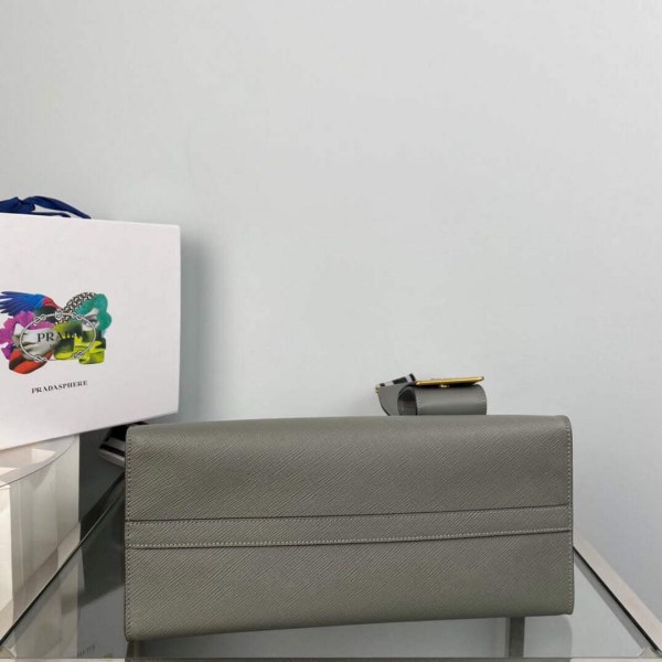 One shade colors the entire Prada Monochrome bag made of Saffiano leather and accented with the metal lettering logo. Saffiano leather, Prada’s iconic material, is synonymous with luxury and identified with the traditional production of Italian leather goods: a premium leather of the highest quality, it is defined by its crosshatch texture and waxed finish.