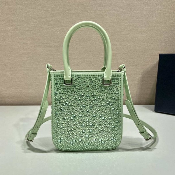 Be the first to review “Prada 1BA331 Small satin tote bag with crystals Green”