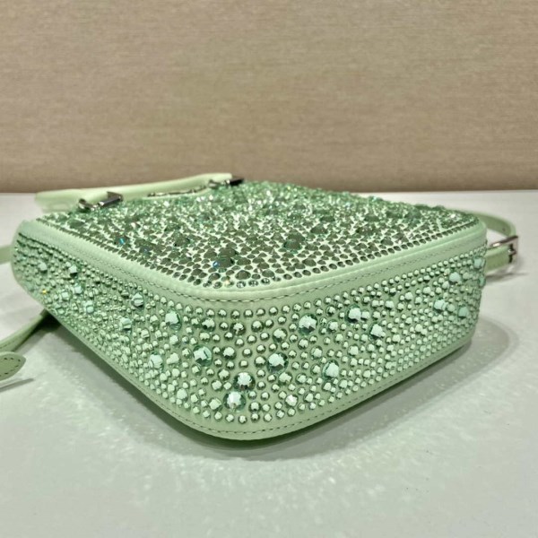 Prada 1BA331 Small satin tote bag with crystals Green