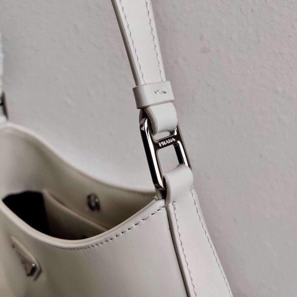 Prada 1BC499 Prada Cleo Brushed Leather Shoulder Bag in White