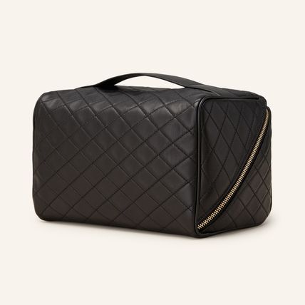 ZIP-AROUND VANITY CASE DECORATED WITH THE CASSANDRE AND DIAMOND-QUILTED OVERSTITCHING, FEATURING A LEATHER TOP HANDLE.