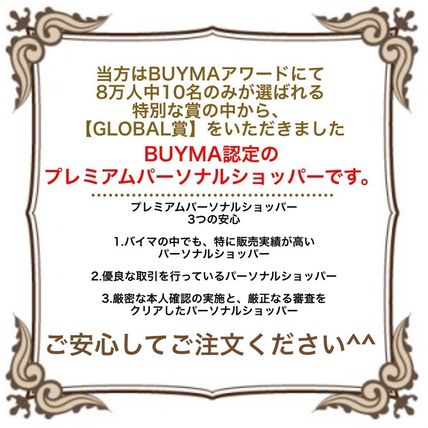 Buyma is committed to ensuring the authenticity of every item sold on our website. Buyma??s zero-tolerance policy and money-back guarantee allow our customers to shop with confidence. Please visit our Authenticity Policy for more details.