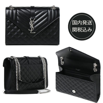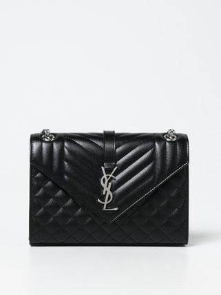 SAINT LAURENT MONOGRAM ENVELOPE BAG MADE WITH METAL-FREE TANNED LEATHER WITH A FRONT FLAP AND MAGNETIC SNAP CLOSURE, DECORATED WITH METAL YSL INITIALS AND A MIX OF VERTICAL, CHEVRON AND DIAMOND QUILTED OVERSTITCHING, FEATURING A LEATHER AND CHAIN STRAP THAT CAN BE WORN TWO WAYS.