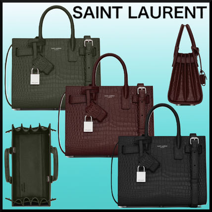 Saint Laurent SAC DE JOUR Casual Style Unisex Calfskin Crocodile Blended Fabrics