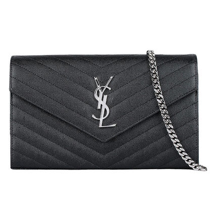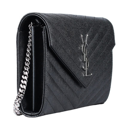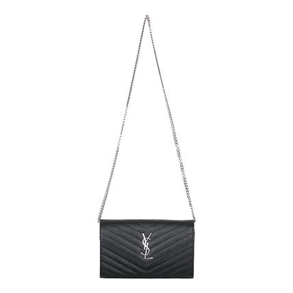 Saint Laurent Monogram Casual Style Calfskin Street Style Chain Plain