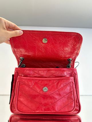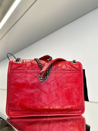 FLAP BAG IN VINTAGE CALF LEATHER, FEATURING CHEVRON QUILT OVERSTITCHING AND LEATHER-ENCASED CASSANDRE. LIGHT, WITH TWO COMPARTMENTS AND A LARGE BACK SLOT POCKET. FEATURES A SLIDING CHAIN STRAP THAT CAN BE WORN ON THE SHOULDER OR CROSSBODY.