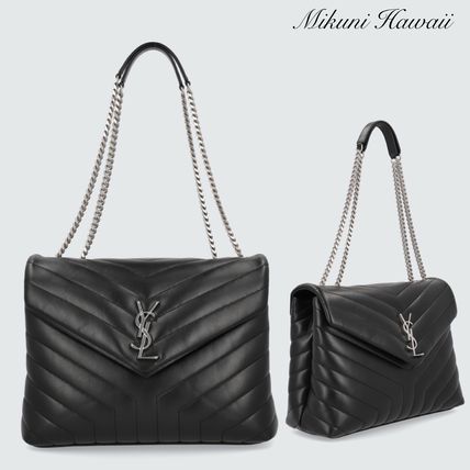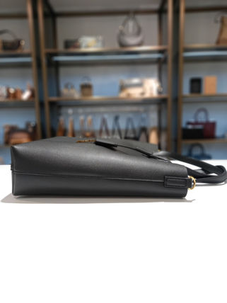 NORTH/SOUTH BAG WITH FLAT HANDLES, WITH AN ADJUSTABLE AND REMOVABLE STRAP, SNAP-BUTTON CLOSURE, AND LEATHER ENCASED YSL CHARM.