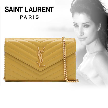 Saint Laurent Plain Leather Elegant Style Logo Shoulder Bags