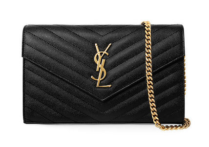 WALLET MADE WITH METAL-FREE TANNED LEATHER WITH FLAP DECORATED WITH METAL YSL INITIALS, QUILTED OVERSTITCHING AND REMOVABLE SHOULDER STRAP CHAIN.